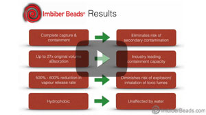 IMBIBER BEADS® completely capture and contain organic liquids, eliminating the liquid phase, reducing vapor release by up to 600% providing first responders with the most post cleanup disposal/recycling options.